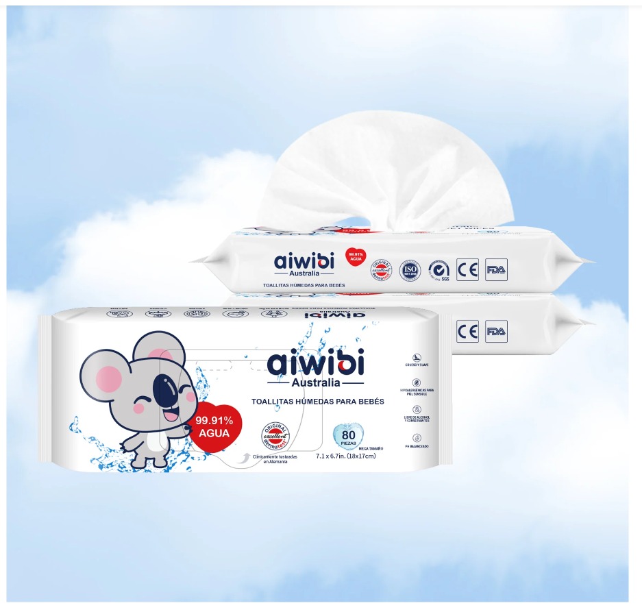 La delicada piel de tu bebé necesita toallitas puras y suaves. Las toallitas húmedas premium para bebés de Aiwibi con un 99,91 % de agua pura son la solución perfecta. Los ingredientes puros y simples son seguros para el contacto directo con los alimentos. Las toallitas se retiran individualmente para evitar la contaminación bacteriana.